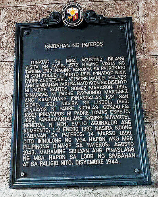 As a tribute to this miracle, the people of Pateros held a grand fluvial procession. In 2008, San Roque Church in Pateros was declared a diocesan shrine in honor of Saint Martha. This church started as a visita of Pasig in 1572 and visita of Taguig in 1742. It was founded in 1815 after Pateros separated from Pasig. Emilio Aguinaldo used the convent as temporary headquarters. During WWII, many Filipino civilians were killed inside the church.