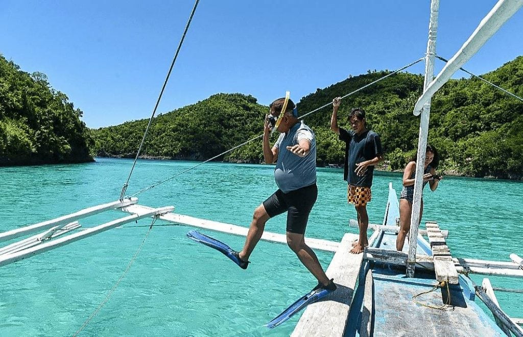 Another day of island hopping brought us to Guinlobngan Island, Isla Florencia, and Buntod Reef Marine Sanctuary. We had to trudge in knee-deep water for about half a kilometer to reach Kurokabayo which is the longest sandbar in Bicol at 2.8 km. We had lunch at the beautiful Playa de Gregorio before proceeding to Balangingi Island. At sunset, we were at Matayum Lagoon. This is where the Bagat Dagat Festival is held every June 23-24 featuring fluvial parade, beach volleyball, dragon boat, motor boat race, tattoo contest, line fishing, kite flying, and fire dancing contest.
