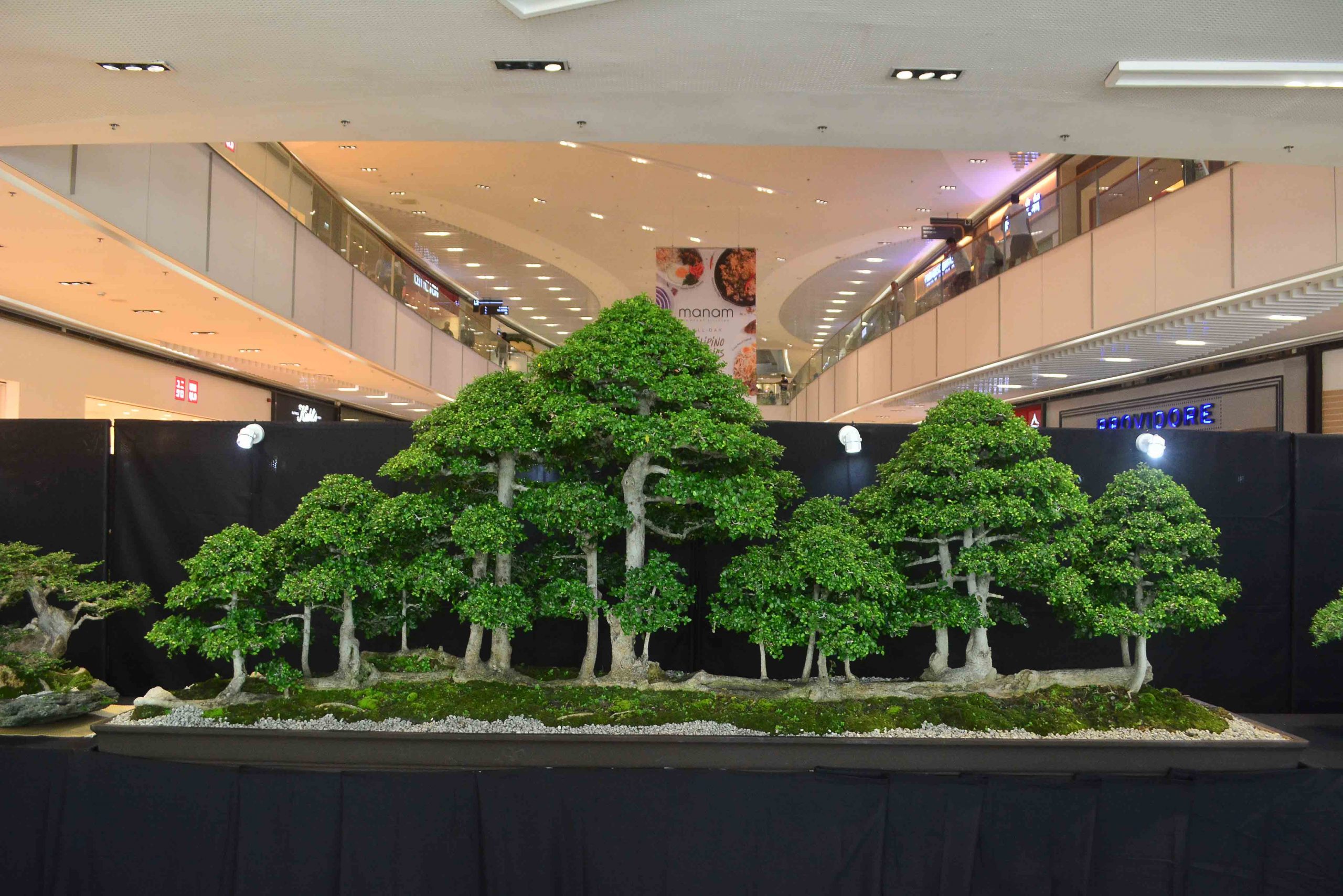 SM Aura Premier was dressed in “Art and Nature” as the upper ground floor and mall entrance will display a total of 64 one-of-a-kind bonsai creations, including a very rare 12-foot raft kalyos. On the third floor, the Natural Stone Society introduced the art of Suiseki or stone arrangement with 40 natural formations. Guests learned the art of bonsai with demos held by master instructor Yen Tzi Jing and SMBC president Richard Tuppil, among other lecturers.
